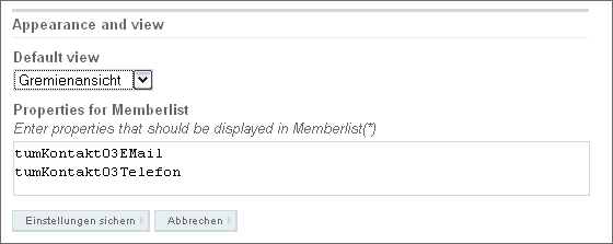 Unter Properties für Memberlist können die gewünschten Daten