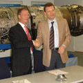 Prof. Kau und Dr. Härtel beim VertragsabschlussIn Turbomotoren, Strahlantrieben und industriellen Anlagen sorgen Radialverdichter für den nötigen Druck. Tests und Analysen im Prüfstand der TU München sollen nun dabei helfen, energiesparende Verdichter zu entwickeln. Dazu schlossen heute Dr. Carlos Härtel, Geschäftsführer von GE Global Research Europe, und Prof. Dr. Hans-Peter Kau, Ordinarius des Lehrstuhls für Flugantriebe der TU München, einen langfristigen Kooperationsvertrag.
