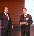 Sitemap > Presse & Kommunikation > Aktuelle Meldungen > TUM - Doktorand mit Marjolin Prize ausgezeichnet > Übergabe des Marjolin Prize an Tobias Berg durch den Nobelpreisträger Robert C. Merton