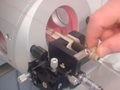 Eine feine Glaskapillare wird vor der Ionenquelle des Massenspektrometers positioniert.