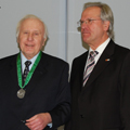 Sitemap > Presse & Kommunikation > Aktuelle Meldungen > TUM-Emeritus Franz Mayinger ist Ehrensenator der Universität Bayreuth > Bayreuths früherer Uni-Präsident Prof. Dr. Helmut Ruppert (r.) verleiht Prof. Dr. Franz Mayinger die Ehrensenator-Würde.