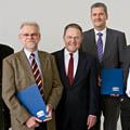 Die beiden Preisträger mit dem Wissenschaftsminister: Dr. Peter Schad, Dr. Wolfgang Heubisch, Prof. Hans-Georg Herzog (v.l.)