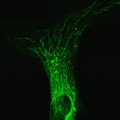 Mitochondriales Netzwerk (grün) in Fibroblasten