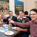 TUM-Präsident Herrmann (2.v.l.) mit Studierenden bei Eröffnung der Cafeteria