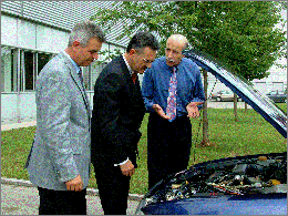 Blick unter die Motorhaube: Prof. Dierk Schröder, TUM-Präsident Wolfgang A. Herrmann und Prof. Bernd-Robert Höhn (v.l.n.r.)