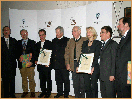 Bei der Presverleihung (v.l.): Prof. Arndt Bode, Prof. Wolfgang Schröder, Dr. Ralph Kühn, Prof. Jürgen Vocke, Prof. Karl-Friedrich Hagenmüller, Dr. Karin Schwaiger, Europaminister Eberhard Sinner, Prof. Johann Bauer