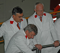 Ministerpräsident Rüttgers mit TU-Präsident Prof. Herrmann und Prof. Petry beim Blick in das ReaktorbeckenMinisterpräsident Rüttgers mit TU-Präsident Prof. Herrmann und Prof. Petry beim Blick in das Reaktorbecken