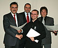 TUM-Präsident Herrmann mit Kanzler Albert Berger, Anian Kammerloher und Martin Diehl (v.l.n.r.)