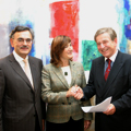 Prof. Oberhoffer nimmt ihre Ernennungsurkunde entgegen.