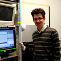 Sitemap > Presse & Kommunikation > Pressemitteilungen > Calmodulin, ein Protein beißt zu > Jan Philipp Junker vor der Auswerteeinheit seines Kraft-Mikroskops
