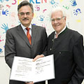 Sitemap > Media > Press releases > Neuer Stiftungslehrstuhl für Sozialpädiatrie an der TU München > TUM Präsident Wolfgang A. Herrmann mit dem Stifter Prof. Theodor Hellbrügge.