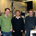 Die drei Garchinger Autoren der PNAS-Publikation Dr. Pierre Thibault, Prof. Franz Pfeiffer und Martin Dierolf im Labor. (Foto: TUM)