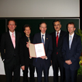 Thomas Manchot (Jürgen Manchot Stiftung), Prof. Dr. Ulrich Heiz (Dekan des Department Chemie der TUM), Prof. Dr. Tobin J. Marks (TUM Distinguished Affiliated Professor), Prof. Dr. Wolfgang A. Herrmann (TUM Präsident), Prof. Dr. Fritz E. Kühn (Fachgebiet Molekulare Katalyse) - Foto: Andreas Battenberg / TUM